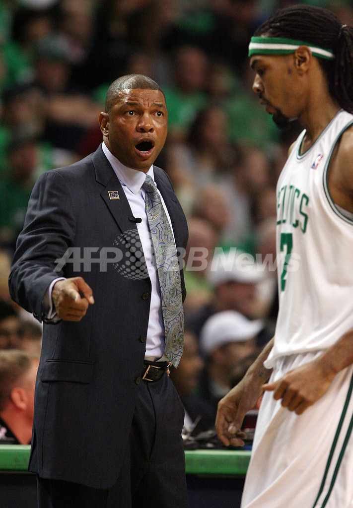 07-08シーズンにNBA最多記録となる通算17度目のファイナル制覇を成し遂げたセルティックスは、レイジョン・ロンド(Rajon Rondo)が29得点、ポール・ピアース(Paul Pierce)が23得点を記録するも、レイ・アレン(Ray Allen)がフィールドゴール(FG)12本のうち1本しか成功せず4得点に終わり精彩を欠いた。(c)AFP