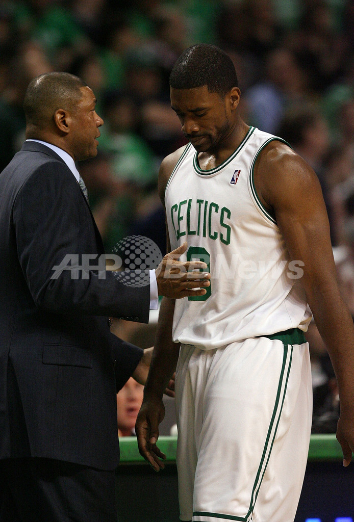 07-08シーズンにNBA最多記録となる通算17度目のファイナル制覇を成し遂げたセルティックスは、レイジョン・ロンド(Rajon Rondo)が29得点、ポール・ピアース(Paul Pierce)が23得点を記録するも、レイ・アレン(Ray Allen)がフィールドゴール(FG)12本のうち1本しか成功せず4得点に終わり精彩を欠いた。(c)AFP