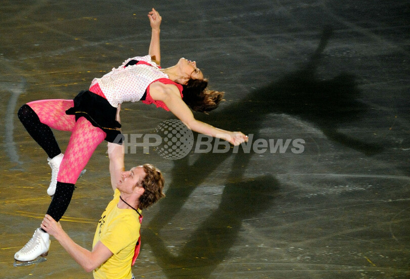 【4月19日 AFP】(写真追加)フィギュアスケート世界国別対抗戦(ISU World Team Trophy 2009)のエキシビションが19日、東京・国立代々木競技場で行われ、日本の安藤美姫(Miki Ando)や浅田真央(Mao Asada)が、ゲストとして登場した米パフォーマンス集団ブルーマングループ(Blue Man Group)とともにパフォーマンスした。(c)AFP/TORU YAMANAKA