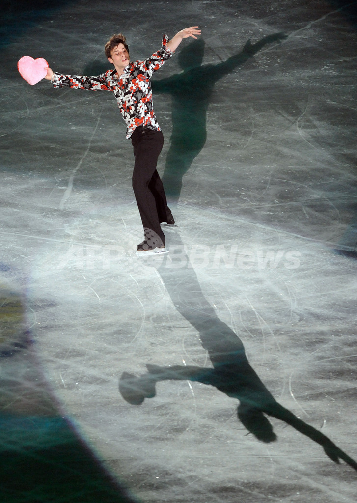 【4月19日 AFP】(写真追加)フィギュアスケート世界国別対抗戦(ISU World Team Trophy 2009)のエキシビションが19日、東京・国立代々木競技場で行われ、日本の安藤美姫(Miki Ando)や浅田真央(Mao Asada)が、ゲストとして登場した米パフォーマンス集団ブルーマングループ(Blue Man Group)とともにパフォーマンスした。(c)AFP/TORU YAMANAKA