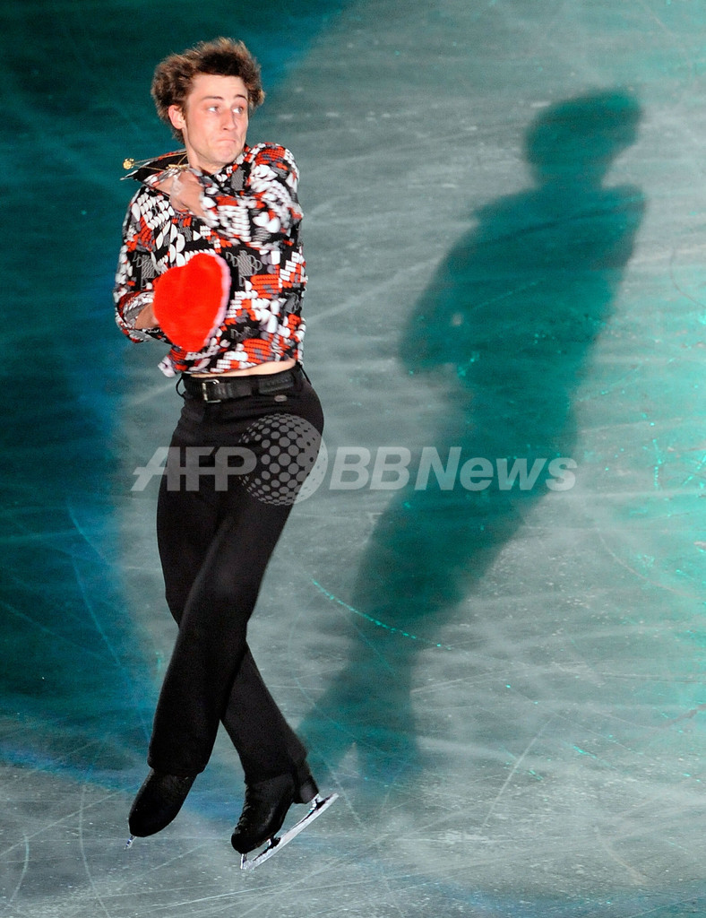 【4月19日 AFP】(写真追加)フィギュアスケート世界国別対抗戦(ISU World Team Trophy 2009)のエキシビションが19日、東京・国立代々木競技場で行われ、日本の安藤美姫(Miki Ando)や浅田真央(Mao Asada)が、ゲストとして登場した米パフォーマンス集団ブルーマングループ(Blue Man Group)とともにパフォーマンスした。(c)AFP/TORU YAMANAKA