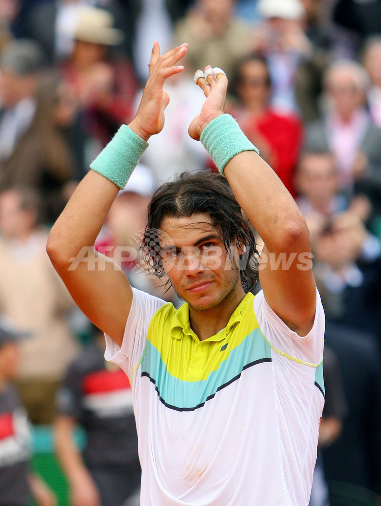 ナダルは、1908年から始まった今大会での優勝回数を通算5回とし、アンソニー・ワイルディング(Anthony Wilding)氏が約100年前に記録した大会記録に並んだ。(c)AFP/Scott Williams