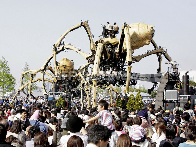 ニュース ライフ 機械仕掛けの巨大クモ、横浜を「襲撃」!! 2009年4月19日 21:44 発信地:横浜/神奈川 [ アジア・オセアニア 神奈川 ] このニュースをシェア ‹ › ❮ 10/10 ❯ 神奈川県横浜市で19日、開港150年を記念したイベントに機械仕掛けの「巨大クモ」が2匹登場した。フランスのパフォーマンス集団「ラ・マシン(La Machine)」が操縦し、高さ12メートル、重さ37トンの巨大クモが赤レンガ倉庫周辺を行進した。(2009年4月19日撮影)。(c)AFP/Yoshikazu TSUNO 画像作成中 ! 【4月19日 AFP】神奈川県横浜市で19日、開港150年を記念したイベントに機械仕掛けの「巨大クモ」が2匹登場した。(c)AFP ライフ 一覧へ> メディア・報道関係・法人の方向け 写真・動画 購入のお問合せ>