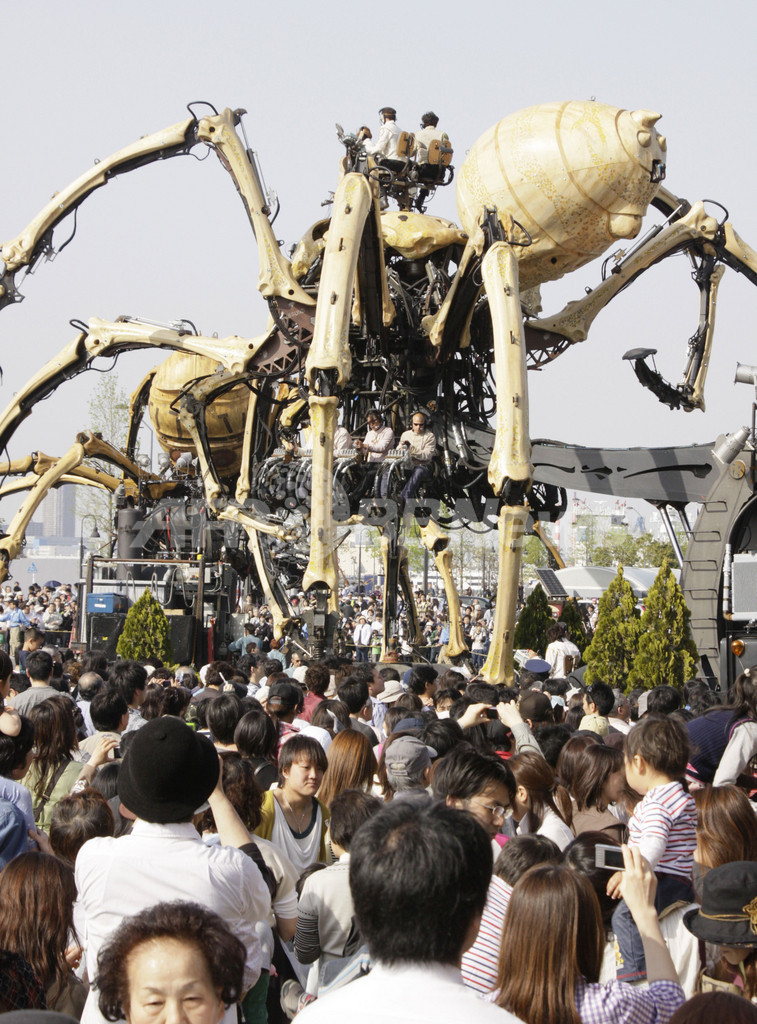 ニュース ライフ 機械仕掛けの巨大クモ、横浜を「襲撃」!! 2009年4月19日 21:44 発信地:横浜/神奈川 [ アジア・オセアニア 神奈川 ] このニュースをシェア ‹ › ❮ 5/10 ❯ 神奈川県横浜市で19日、開港150年を記念したイベントに機械仕掛けの「巨大クモ」が2匹登場した。フランスのパフォーマンス集団「ラ・マシン(La Machine)」が操縦し、高さ12メートル、重さ37トンの巨大クモが赤レンガ倉庫周辺を行進した。(2009年4月19日撮影)。(c)AFP/Yoshikazu TSUNO 画像作成中 ! 【4月19日 AFP】神奈川県横浜市で19日、開港150年を記念したイベントに機械仕掛けの「巨大クモ」が2匹登場した。(c)AFP ライフ 一覧へ> メディア・報道関係・法人の方向け 写真・動画 購入のお問合せ>