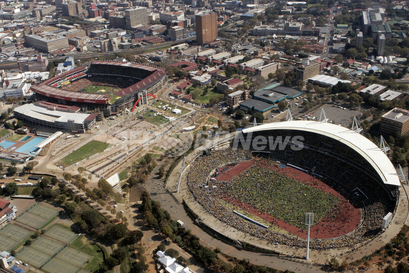 エリスパークスタジアム(Ellis Park Stadium)に集まった10万人を超える支持者は、ANC幹部とジェイコブ・ズマ(Jacob Zuma)ANC議長(党首)に付き添われて姿を見せたマンデラ氏を大きな歓声で迎えた。