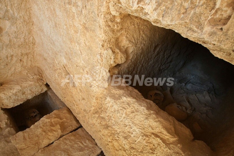 これまでのレーダー調査で、地中に墓所とおぼしき2つの大きな部屋と通路があることがわかっている。調査隊は現在、クレオパトラの墓に通じる通路の入口を探している。(c)AFP/Cris Bouroncle