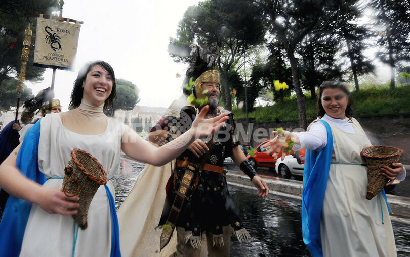 ニュース ライフ 古代ローマ建国2762年祝う市民の仮装パレード 2009年4月20日 17:19 発信地:ローマ/イタリア [ ヨーロッパ イタリア ] このニュースをシェア ‹ › ❮ 12/16 ❯ 古代ローマ建国2762年を祝い、イタリア・ローマ(Rome)を古代ローマの衣装でパレードする人びと。伝説によると古代ローマは双子の兄弟ロムルス(Romulus)とレムス(Remus)が紀元前753年4月21日に建国した(2009年4月19日撮影)。(c)AFP/TIZIANA FABI 画像作成中 ! 【4月20日 AFP】イタリア、ローマ(Roma)で19日、古代ローマの建国から2762年を祝う記念パレードやライトアップが行われた。伝説によると古代ローマは、ロムルス(Romulus)とレムス(Remus)という双子の兄弟によって紀元前753年4月21日に建国された。(c)AFP ライフ 一覧へ> メディア・報道関係・法人の方向け 写真・動画 購入のお問合せ>