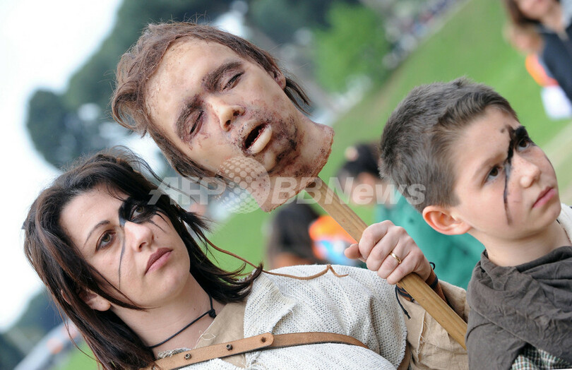 ニュース ライフ 古代ローマ建国2762年祝う市民の仮装パレード 2009年4月20日 17:19 発信地:ローマ/イタリア [ ヨーロッパ イタリア ] このニュースをシェア ‹ › ❮ 11/16 ❯ 古代ローマ建国2762年を祝うイタリア・ローマ(Rome)で、古代ローマの衣装でろう人形の首を持ちながらパレードする女性。伝説によると古代ローマは双子の兄弟ロムルス(Romulus)とレムス(Remus)が紀元前753年4月21日に建国した(2009年4月19日撮影)。(c)AFP/TIZIANA FABI 画像作成中 ! 【4月20日 AFP】イタリア、ローマ(Roma)で19日、古代ローマの建国から2762年を祝う記念パレードやライトアップが行われた。伝説によると古代ローマは、ロムルス(Romulus)とレムス(Remus)という双子の兄弟によって紀元前753年4月21日に建国された。(c)AFP ライフ 一覧へ> メディア・報道関係・法人の方向け 写真・動画 購入のお問合せ>