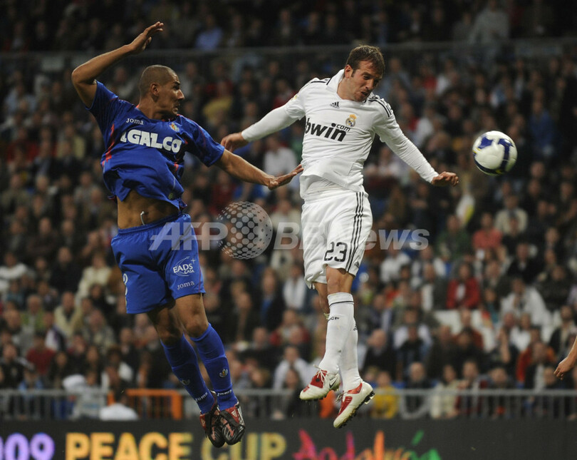 【4月22日 AFP】08-09スペイン1部リーグ第32節、レアル・マドリード(Real Madrid)対ヘタフェ(Getafe CF)。試合はレアル・マドリードが3-2で競り勝ち、リーグ優勝へ望みをつないだ。