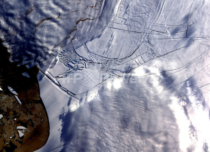 この氷橋は周辺の分裂した氷を安定化させる上で非常に重要な役割を担っているが、亀裂が入ったことでただちに氷が流出することはないという。(c)AFP