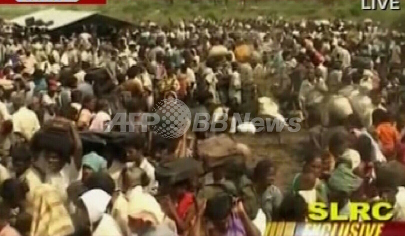 「人間の盾」としてLTTEに連行された市民のうち、21日までに約5万人が解放されているが、非戦闘地域にはまだ5万人程度の市民が残っていると見られ、米政府と赤十字(Red Cross)は、政府軍、LTTEの双方に対し、非戦闘地域における戦闘の自制を求めている。(c)AFP