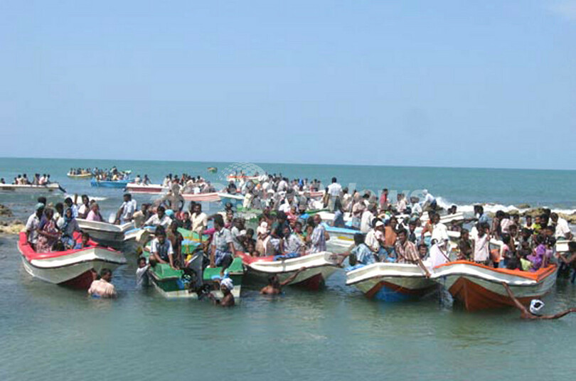 写真は、軍当局が公開した、ボートで脱走した市民を撮影したもの(2009年4月21日提供)。(c)AFP/SRI LANKA NAVY