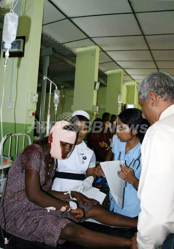写真は、コロンボ(Colombo)の北方約200キロにあるアヌラーダプラ(Anuradhapura)の病院で治療を受ける、負傷した市民(2009年4月21日撮影)。(c)AFP