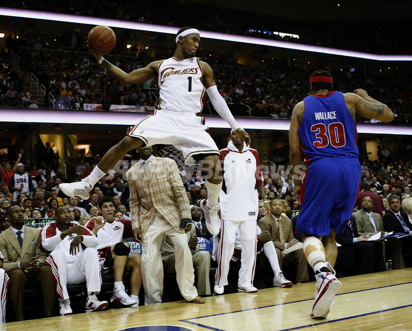 【4月22日 AFP】(写真追加)08-09NBA東カンファレンスプレーオフ1回戦、クリーブランド・キャバリアーズ(Cleveland Cavaliers)対デトロイト・ピストンズ(Detroit Pistons)第2戦。試合はレブロン・ジェームズ(LeBron James)が29得点、モー・ウィリアムズ(Maurice "Mo" Williams)が21得点を記録したキャバリアーズが94-82で勝利し、2連勝を飾った。(c)AFP