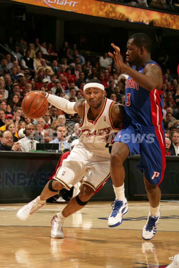 【4月22日 AFP】(写真追加)08-09NBA東カンファレンスプレーオフ1回戦、クリーブランド・キャバリアーズ(Cleveland Cavaliers)対デトロイト・ピストンズ(Detroit Pistons)第2戦。試合はレブロン・ジェームズ(LeBron James)が29得点、モー・ウィリアムズ(Maurice "Mo" Williams)が21得点を記録したキャバリアーズが94-82で勝利し、2連勝を飾った。(c)AFP