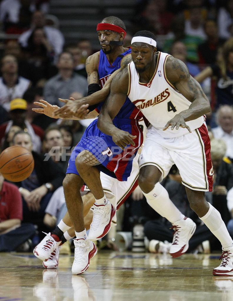【4月22日 AFP】(写真追加)08-09NBA東カンファレンスプレーオフ1回戦、クリーブランド・キャバリアーズ(Cleveland Cavaliers)対デトロイト・ピストンズ(Detroit Pistons)第2戦。試合はレブロン・ジェームズ(LeBron James)が29得点、モー・ウィリアムズ(Maurice "Mo" Williams)が21得点を記録したキャバリアーズが94-82で勝利し、2連勝を飾った。(c)AFP