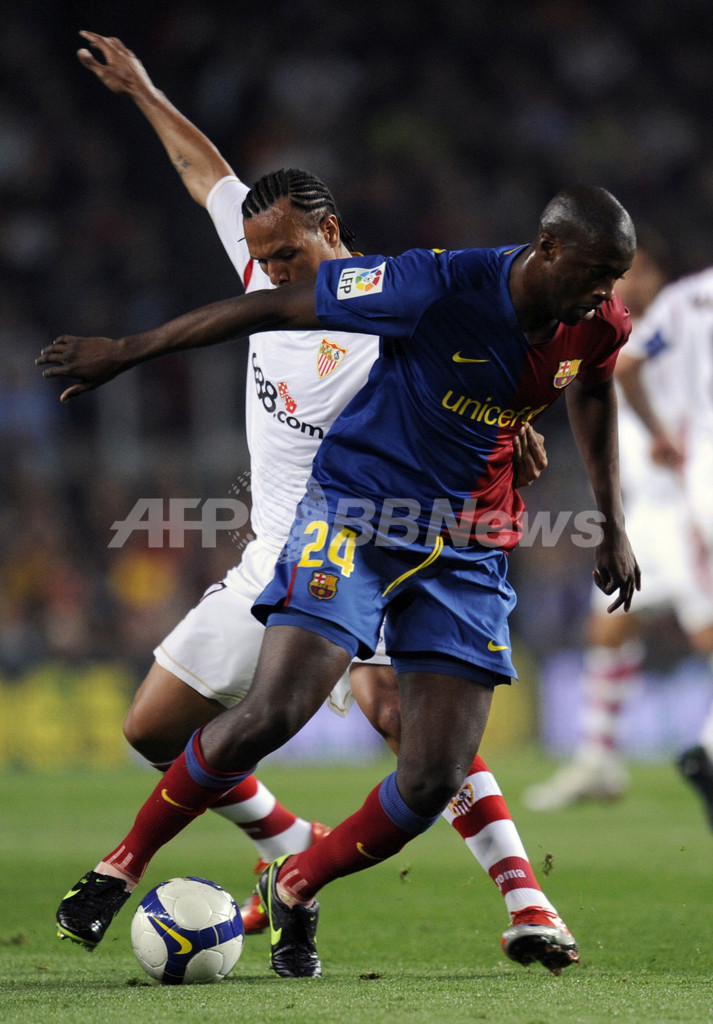 【4月23日 AFP】(写真追加、記事更新)08-09スペイン1部リーグ第32節、FCバルセロナ(FC Barcelona)対セビージャFC(Sevilla FC)。試合はバルセロナが4-0でセビージャに快勝し、2位レアル・マドリード(Real Madrid)との勝ち点差を再び6とした。