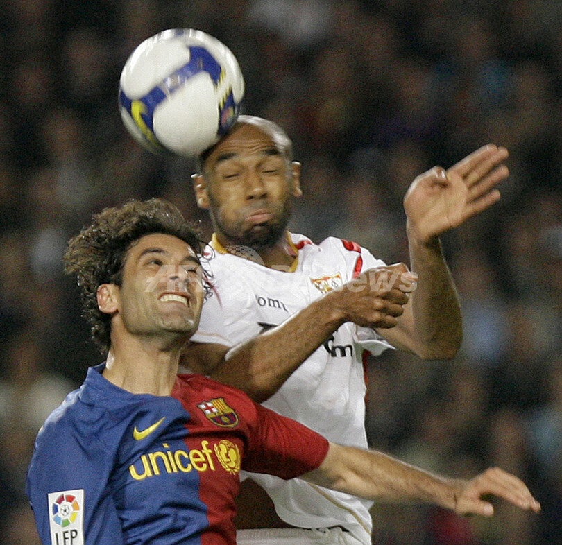 【4月23日 AFP】(写真追加、記事更新)08-09スペイン1部リーグ第32節、FCバルセロナ(FC Barcelona)対セビージャFC(Sevilla FC)。試合はバルセロナが4-0でセビージャに快勝し、2位レアル・マドリード(Real Madrid)との勝ち点差を再び6とした。