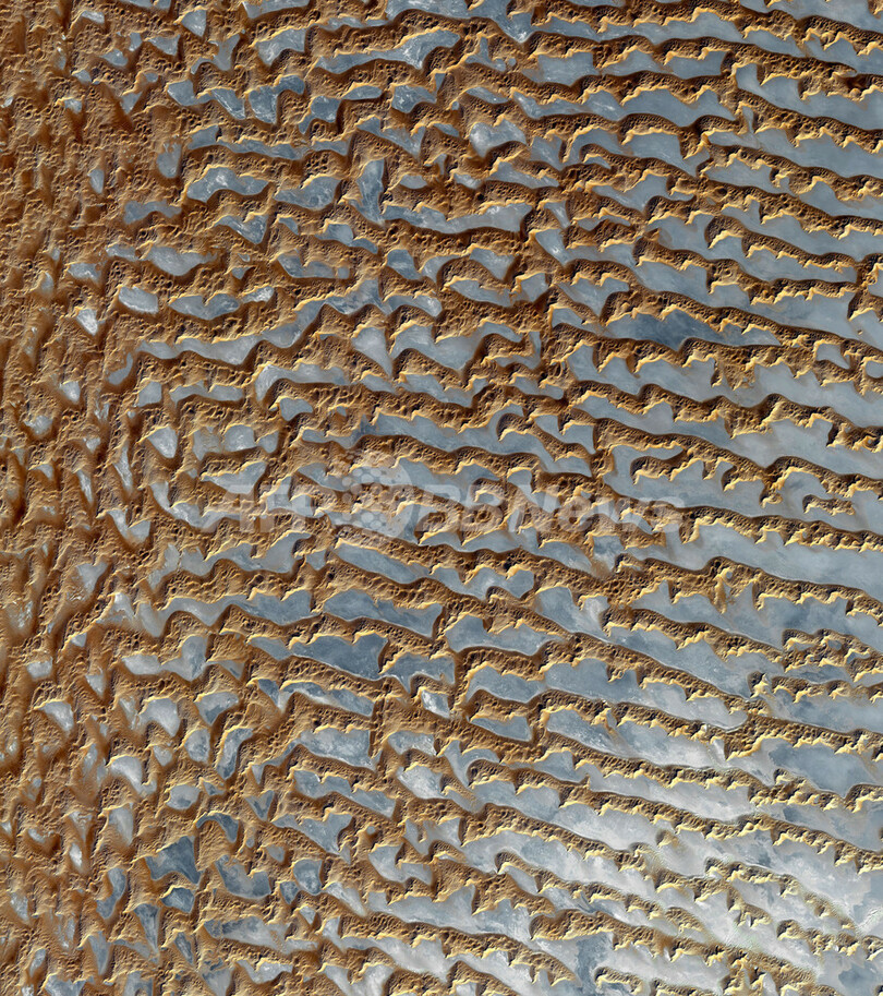 米航空宇宙局(NASA)はアースデー(地球の日、Earth Day)の22日、アポロ8号(Apollo 8)や国際宇宙ステーション(International Space Station、ISS)など、これまでの宇宙ミッションで撮影された地球の写真を公開した。写真は地球観測衛星テラ(Terra)に搭載された高性能光学センサー「ASTER(Advanced Spaceborne Thermal Emission and Reflection Radiometer)」が撮影したアラビア半島のルブアルハリ(Rub' al Khali)砂漠(2005年12月2日撮影)。(c)AFP/NASA