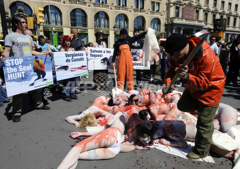 ニュース ライフ アザラシ猟反対!動物保護団体がパフォーマンス バルセロナ 2009年4月24日 13:17 発信地:バルセロナ/スペイン [ ヨーロッパ スペイン ] このニュースをシェア ‹ › ❮ 4/4 ❯ スペイン・バルセロナ(Barcelona)のカナダ領事館前でアザラシ猟に抗議するためのパフォーマンスを行う動物保護団体AnimaNaturalisのメンバー(2009年4月23日撮影)。(c)AFP/LLUIS GENE 画像作成中 ! 【4月24日 AFP】スペイン・バルセロナ(Barcelona)のカナダ領事館前で23日、動物保護団体AnimaNaturalisのメンバーがアザラシ猟に抗議するパフォーマンスを行った。カナダでは4月上旬からアザラシ猟が開始されている。今年最後の解禁期間であるこの時期の捕獲制限は18万8600頭で、今年全体の総捕獲頭数は33万8000頭となる見込み。(c)AFP ライフ 一覧へ> メディア・報道関係・法人の方向け 写真・動画 購入のお問合せ>