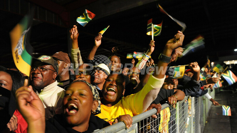 【4月25日 AFP】南アフリカの総選挙で、選挙管理員会が24日に出した非公式発表によると、与党アフリカ民族会議(African National Congress、ANC)が全有権者2300万人のうち1160万人の得票で絶対多数を獲得した。総選挙の大勝を受けて大統領に選出される見込みとなったANCのジェイコブ・ズマ(Jacob Zuma)議長は、激動する経済状況の中、貧困層からの大きな期待を背負うことになる。(c)AFP/Fran Blandy