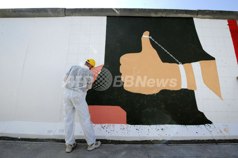 ベルリンの壁崩壊からもうすぐ20周年、芸術家ら壁の絵を修復