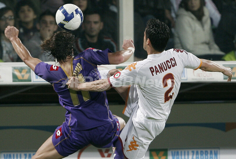 スポーツ サッカー フィオレンティーナ 4得点を奪いローマに快勝 2009年4月26日 9:01 発信地:イタリア [ ヨーロッパ イタリア ] このニュースをシェア ‹ › ❮ 7/9 ❯ 08-09イタリア・セリエA第33節、フィオレンティーナ(%%Fiorentina%%)対ASローマ(%%AS Roma%%)。試合は09-10シーズンの欧州チャンピオンズリーグ(%%UEFA Champions League%%)出場権獲得を目指すフィオレンティーナが4-1でローマを退けた。写真はボールを競るフィオレンティーナのリカルド・モントリーボ(%%Riccardo Montolivo%%、左)とASローマのクリスティアン・パヌッチ(%%Christian Panucci%%、右)。(2009年4月25日撮影)(c)AFP/FABIO MUZZI 画像作成中 ! 【4月26日 AFP】08-09イタリア・セリエA第33節、フィオレンティーナ(Fiorentina)対ASローマ(AS Roma)。試合は09-10シーズンの欧州チャンピオンズリーグ(UEFA Champions League)出場権獲得を目指すフィオレンティーナが4-1でローマを退けた。(c)AFP サッカー 一覧へ> メディア・報道関係・法人の方向け 写真・動画 購入のお問合せ>
