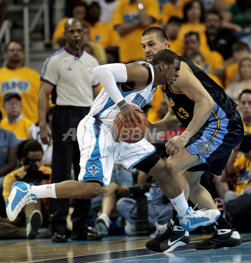 【4月26日 AFP】08-09NBA西カンファレンスプレーオフ1回戦、ニューオーリンズ・ホーネッツ(New Orleans Hornets)対デンバー・ナゲッツ(Denver Nuggets)第3戦。試合はホーネッツが95-93でナゲッツを下し、シリーズ初勝利を挙げた。