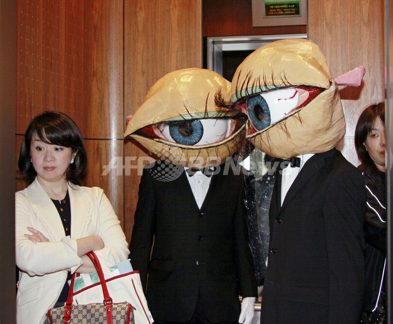 写真は、六本木ヒルズを練り歩くパフォーマンス・グループ「Medaman-Medaman」(2009年4月26日撮影)。(c)AFP/Yoshikazu TSUNO