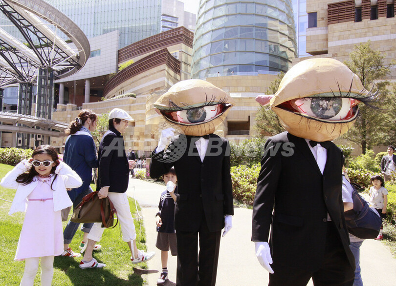 【4月26日 AFP】ゴールデンウイークが始まった都内の六本木ヒルズ(Roppongi Hills)で26日、大きな目玉のマスクを被ったパフォーマンス・グループ「Medaman-Medaman」などさまざまなストリートパフォーマーらが、訪れた買い物客らを楽しませた。(c)AFP