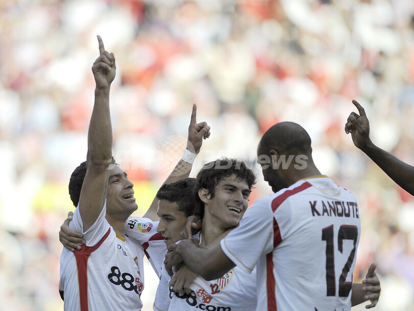 【4月27日 AFP】08-09スペイン1部リーグ第33節、セビージャFC(Sevilla FC)対レアル・マドリード(Real Madrid)。試合はレアル・マドリードが4-2で勝利した。