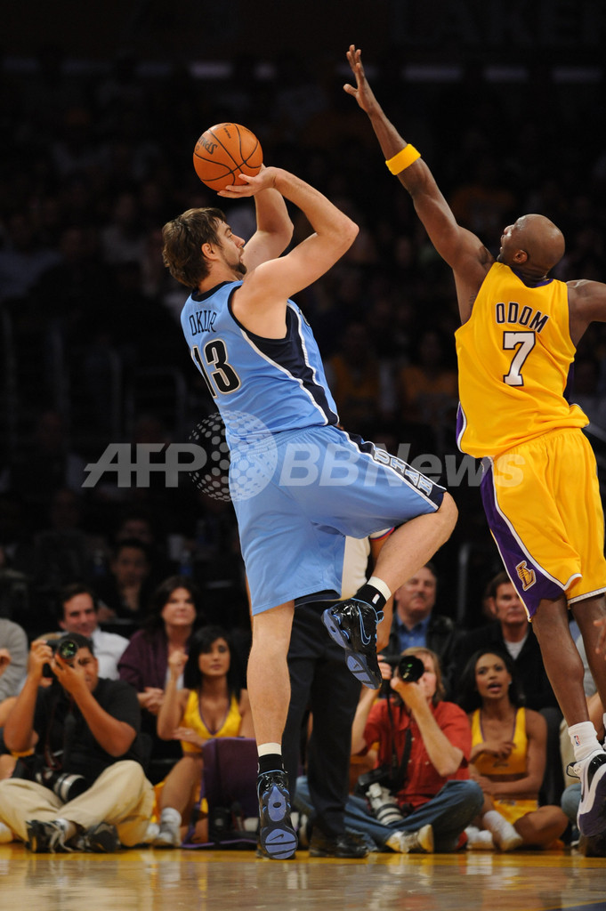 【4月28日 AFP】08-09NBA西カンファレンスプレーオフ1回戦、ロサンゼルス・レイカーズ(Los Angeles Lakers)対ユタ・ジャズ(Utah Jazz)第5戦。試合はレイカーズが107-96で勝利し、通算戦績を4勝1敗として同準決勝に進んだ。