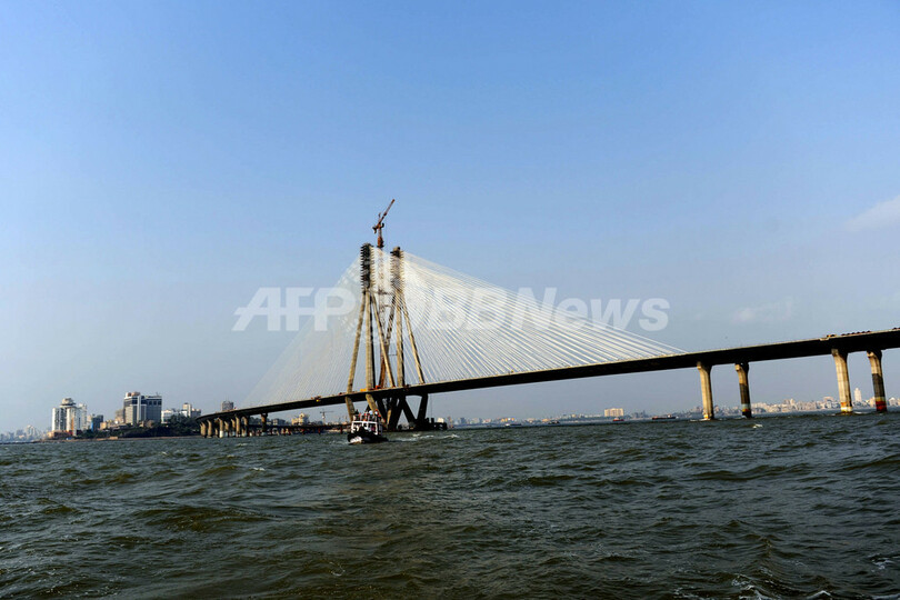 Bandra Worli Sea Link)」の建設が最終段階を迎えている。(c)AFP