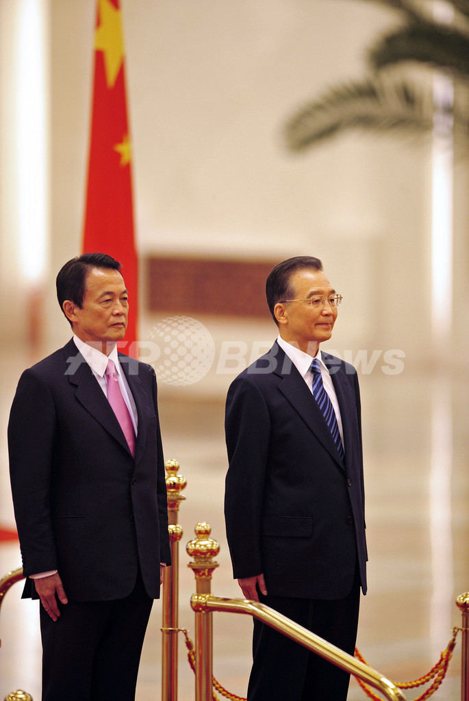 一方、麻生首相の今回の訪中では、両国間の長年にわたる懸案事項にも注目が集まった。麻生首相は前週、靖国神社に真榊料を奉納したが、国営新華社(Xinhua)通信によると、温首相は「歴史問題は敏感な問題で、国民感情にかかわるものだ。日本側が適切に処理することを望む」と述べ、不快感を示した。(c)AFP/Kyoko Hasegawa