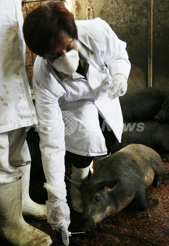 新型インフルエンザは、3大陸でヒトと鳥への感染を引き起こすウイルス成分をもっていることが確認されており、「豚インフル」と呼ばれているが、米国内では豚の感染事例はまったく報告されていない。(c)AFP