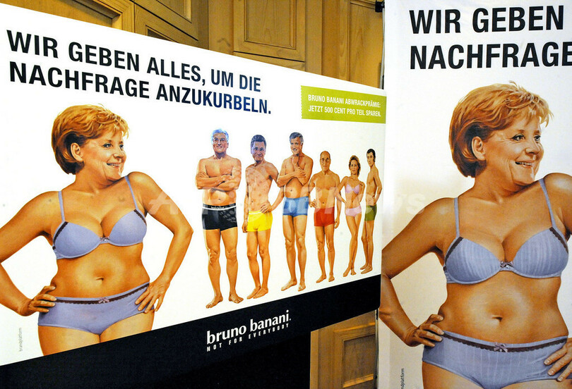 この広告は、ある下着メーカーがドイツ全土で始める「下着の下取りキャンペーン」の宣伝。「この国には新しい下着が必要だ」とのキャッチコピーの下、古い下着を下取りに出した客に対し、新しい下着セットを購入する際に5ユーロ(約660円)の値引きをするという。独自動車メーカーが消費奨励策の一環として行った車の下取りキャンペーンの成功に便乗したものだ。