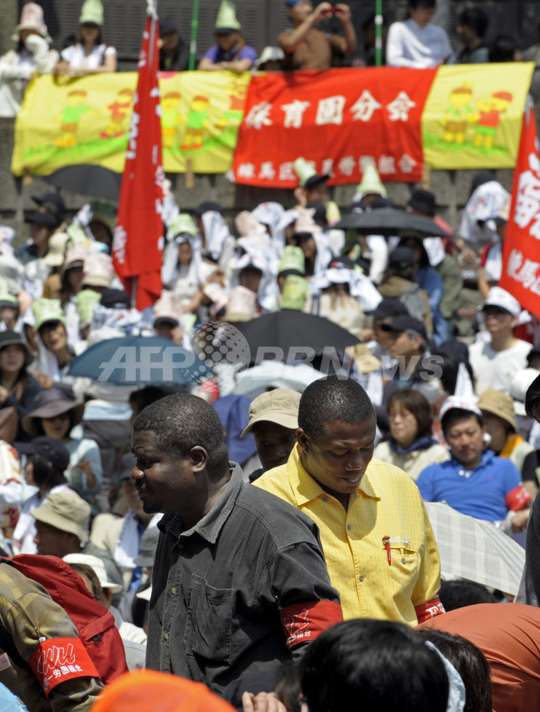 ニュース 政治・経済 都内でメーデーのデモ行進、国内失業率は4.8%に 2009年5月1日 16:40 発信地:東京 [ アジア・オセアニア 東京 ] このニュースをシェア ‹ › ❮ 2/5 ❯ 都内で1日、数千人が参加しメーデー(May Day)集会とデモ行進が行われた。総務省が同日発表した労働力調査によると、3月の完全失業率(季節調整済み)は4.8%となった。写真は、「メーデー」のデモ行進に参加する保育園と幼稚園の教諭ら(2009年5月1日撮影)。(c)AFP/TOSHIFUMI KITAMURA 画像作成中 ! 【5月1日 AFP】都内で1日、数千人が参加しメーデー(May Day)集会とデモ行進が行われた。総務省が同日発表した労働力調査によると、3月の完全失業率(季節調整済み)は4.8%となった。(c)AFP 政治・経済 一覧へ> メディア・報道関係・法人の方向け 写真・動画 購入のお問合せ>
