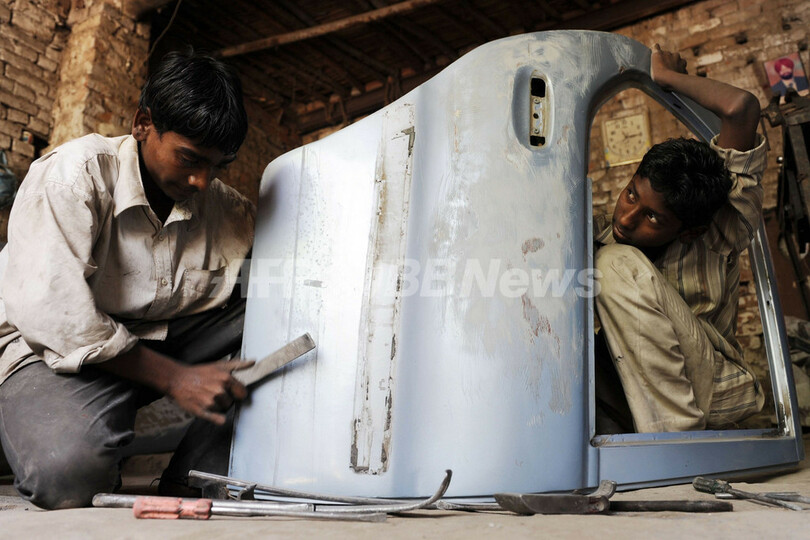 「国際労働者の日(International Labour Day)」でもある労働者の祭典、メーデー前夜の30日。世界各地で、労働者がさまざまな形で労働者の権利をアピールした(2009年4月30日撮影)。(c)AFP/NARINDER NANU