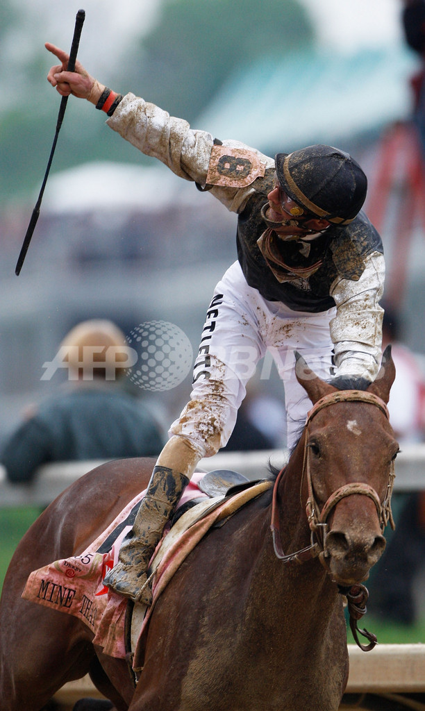 スポーツ スポーツ その他 マインザットバードが第135回ケンタッキーダービーを制す 2009年5月3日 9:01 発信地:ルイビル/米国 [ 北米 米国 ] このニュースをシェア ‹ › ❮ 9/10 ❯ 米国競馬のG1レース、第135回ケンタッキーダービー(%%135th Kentucky Derby%%、3歳、ダート10ハロン)がチャーチルダウンズ競馬場(Churchill Downs)で開催され、キャルヴィン・ボレル(%%Calvin Borel%%)騎手騎乗のマインザットバード(Mine That Bird)が、2着以下に6と3/4馬身差以上をつけて優勝した。写真はトップでフィニッシュし歓喜するボレル騎手。(2009年5月2日撮影)(c)AFP/Getty Images/Jamie Squire 画像作成中 ! 【5月3日 AFP】米国競馬のG1レース、第135回ケンタッキーダービー(135th Kentucky Derby、3歳、ダート10ハロン)がチャーチルダウンズ競馬場(Churchill Downs)で開催され、キャルヴィン・ボレル(Calvin Borel)騎手騎乗のマインザットバード(Mine That Bird)が、2着以下に6と3/4馬身差以上をつけて優勝した。(c)AFP スポーツ その他 一覧へ> メディア・報道関係・法人の方向け 写真・動画 購入のお問合せ>