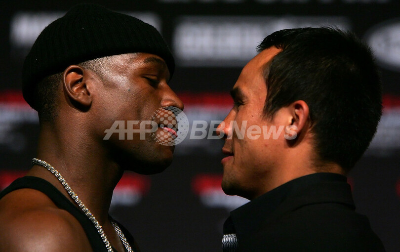 【5月3日 AFP】17か月前に無敗のまま現役を引退したフロイド・メイウェザー・ジュニア(Floyd Mayweather Jr.、米国)が2日、マニー・パッキャオ(Manny Pacquiao、フィリピン)とリッキー・ハットン(Ricky Hatton、英国)によるボクシングIBO世界スーパーライト級タイトルマッチ12回戦開始を数時間後に控えたMGMグランドアリーナ(the MGM Grand Arena)で記者会見を行ない、7月18日にメキシコのファン・マヌエル・マルケス(Juan Manuel Marquez)との試合で現役復帰することを発表した。(c)AFP