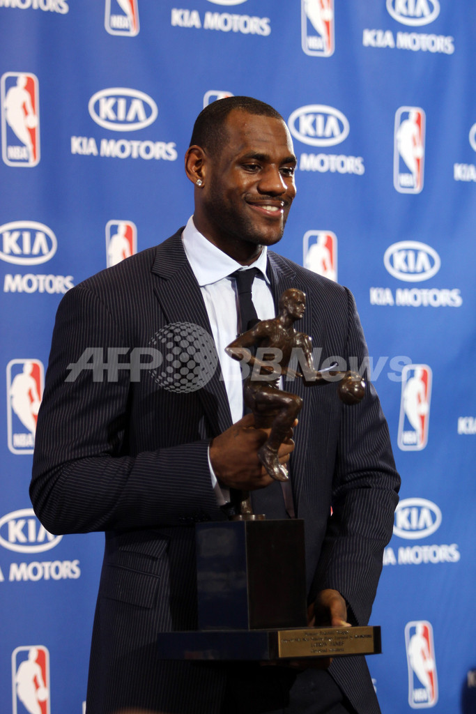 【5月5日 AFP】(写真追加)NBA、クリーブランド・キャバリアーズ(Cleveland Cavaliers)のレブロン・ジェームズ(LeBron James)が4日、2008-09シーズンの最優秀選手(MVP)に初選出された。
