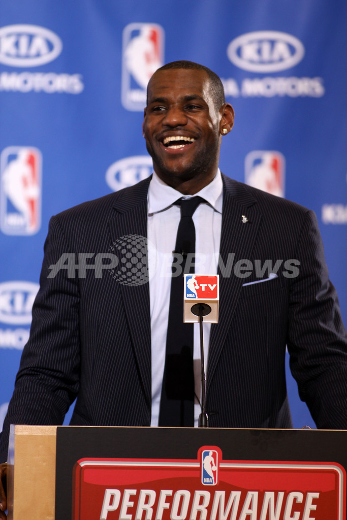 【5月5日 AFP】(写真追加)NBA、クリーブランド・キャバリアーズ(Cleveland Cavaliers)のレブロン・ジェームズ(LeBron James)が4日、2008-09シーズンの最優秀選手(MVP)に初選出された。