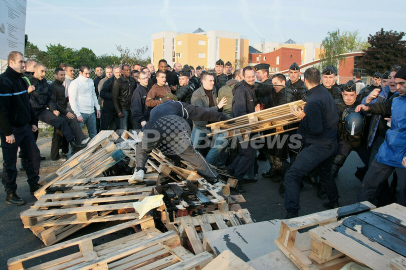 ニュース 社会 パリ郊外の刑務所、待遇改善訴える看守と警官隊が衝突 2009年5月5日 16:32 発信地:パリ/フランス [ ヨーロッパ フランス ] このニュースをシェア ‹ › ❮ 13/14 ❯ フランス・パリ(Paris)郊外のフリューリーメロジ(Fleury-Merogis)で、刑務所の看守らが待遇改善を訴え抗議活動を行い、警官隊と激しく衝突した。欧州最大の同刑務所は、全2855室の監房に3700人以上が収容されているという。写真は、刑務所に通じる道をバリケードで封鎖する看守たちと、これを止めようとする警官隊(2009年5月4日撮影)。(c)AFP/JACQUES DEMARTHON 画像作成中 ! 【5月5日 AFP】フランス・パリ(Paris)郊外フリューリーメロジ(Fleury-Merogis)で4日、刑務所の看守らが待遇改善を訴え、激しい抗議活動を行った。(c)AFP 社会 一覧へ> メディア・報道関係・法人の方向け 写真・動画 購入のお問合せ>