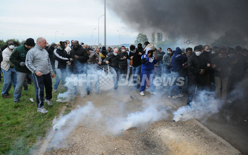 ニュース 社会 パリ郊外の刑務所、待遇改善訴える看守と警官隊が衝突 2009年5月5日 16:32 発信地:パリ/フランス [ ヨーロッパ フランス ] このニュースをシェア ‹ › ❮ 2/14 ❯ フランス・パリ(Paris)郊外のフリューリーメロジ(Fleury-Merogis)で、刑務所の看守らが待遇改善を訴え抗議活動を行い、警官隊と激しく衝突した。欧州最大の同刑務所は、全2855室の監房に3700人以上が収容されているという。写真は、刑務所に通じる道をバリケードで封鎖し警官隊に催涙弾を打ち込まれる看守ら(2009年5月4日撮影)。(c)AFP/BORIS HORVAT 画像作成中 ! 【5月5日 AFP】フランス・パリ(Paris)郊外フリューリーメロジ(Fleury-Merogis)で4日、刑務所の看守らが待遇改善を訴え、激しい抗議活動を行った。(c)AFP 社会 一覧へ> メディア・報道関係・法人の方向け 写真・動画 購入のお問合せ>