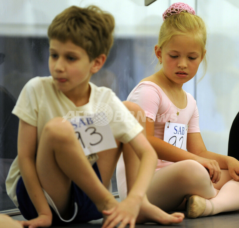 米ニューヨーク(New York)のリンカーン・センター(Lincoln Center)にあるバレエ学校「スクール・オブ・アメリカン・バレエ(School of American Ballet)」で5日、7-8歳児向けのオーディションが開催された。同バレエ学校は1934年にジョージ・バランシン(George Balanchine)とリンカーン・カースティン(Lincoln Kirstein)によって設立された、米国でも権威ある学校。写真は、自分たちの出番を待つ子どもたち(2009年5月5日撮影)。(c)AFP/TIMOTHY A. CLARY