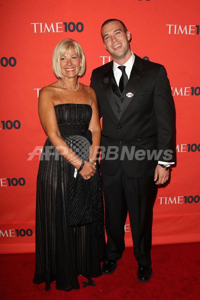 米タイム(Time)誌が選ぶ「世界で最も影響力のある100人」の発表を記念したパーティーが5日、ニューヨーク(New York)で開催された。写真は、パーティーに出席したバラク・オバマ(Barack Obama)大統領のスピーチライター、ジョン・ファブロー(Jon Favreau)氏(右)とその母親のリリアン(Lillian Favreau)さん(2009年5月5日撮影)。(c)AFP/Getty Images/Stephen Lovekin