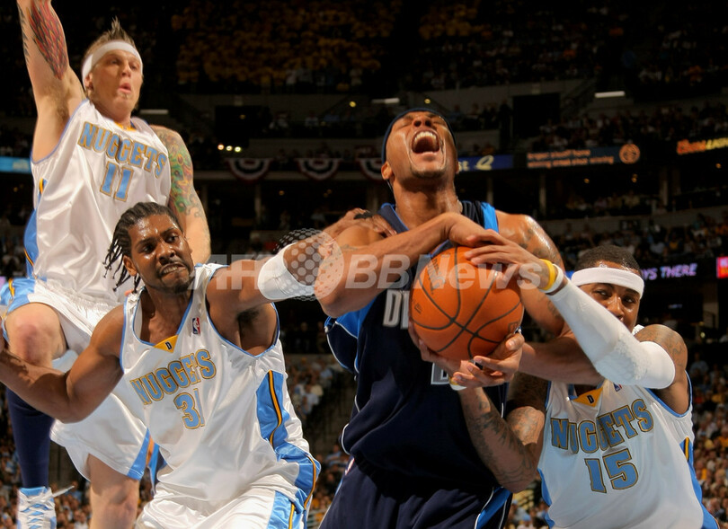 スポーツ バスケットボール ナゲッツ マーベリックスに連勝、NBAプレーオフ 2009年5月6日 15:26 発信地:デンバー/米国 [ 北米 米国 ] このニュースをシェア ‹ › ❮ 13/14 ❯ 08-09NBA西カンファレンスプレーオフ準決勝、デンバー・ナゲッツ(%%Denver Nuggets%%)対ダラス・マーベリックス(%%Dallas Mavericks%%)第2戦。試合はナゲッツが117-105で勝利し、2連勝を飾った。写真はネネ・ヒラリオ(%%Nene Hilario%%、左前)とカーメロ・アンソニー(%%Carmelo Anthony%%、右)からのマークに苦しむマーベリックスのアントワン・ライト(%%Antoine Wright%%)。(2009年5月5日撮影)(c)AFP/Getty Images/Doug Pensinger 画像作成中 ! 【5月6日 AFP】(写真追加)08-09NBA西カンファレンスプレーオフ準決勝、デンバー・ナゲッツ(Denver Nuggets)対ダラス・マーベリックス(Dallas Mavericks)第2戦。試合はナゲッツが117-105で勝利し、2連勝を飾った。(c)AFP バスケットボール 一覧へ> メディア・報道関係・法人の方向け 写真・動画 購入のお問合せ>