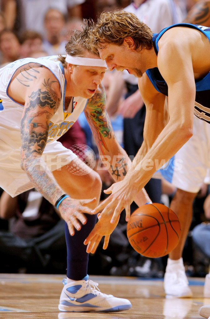 スポーツ バスケットボール ナゲッツ マーベリックスに連勝、NBAプレーオフ 2009年5月6日 15:26 発信地:デンバー/米国 [ 北米 米国 ] このニュースをシェア ‹ › ❮ 3/14 ❯ 08-09NBA西カンファレンスプレーオフ準決勝、デンバー・ナゲッツ(%%Denver Nuggets%%)対ダラス・マーベリックス(%%Dallas Mavericks%%)第2戦。試合はナゲッツが117-105で勝利し、2連勝を飾った。写真はクリス・アンダーセン(%%Chris Andersen%%)にボールを奪われるマーベリックスのダーク・ノビツキー(%%Dirk Nowitzki%%、右)。(2009年5月5日撮影)(c)AFP/Getty Images/Doug Pensinger 画像作成中 ! 【5月6日 AFP】(写真追加)08-09NBA西カンファレンスプレーオフ準決勝、デンバー・ナゲッツ(Denver Nuggets)対ダラス・マーベリックス(Dallas Mavericks)第2戦。試合はナゲッツが117-105で勝利し、2連勝を飾った。(c)AFP バスケットボール 一覧へ> メディア・報道関係・法人の方向け 写真・動画 購入のお問合せ>