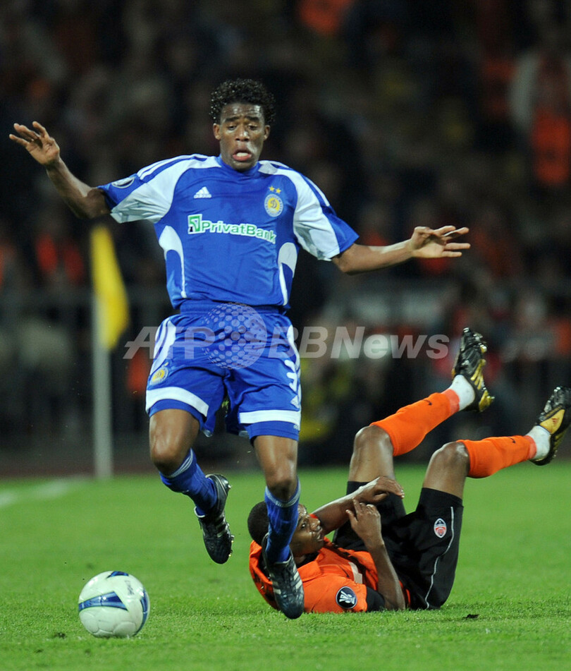 【5月8日 AFP】(記事更新)サッカーUEFA杯2008-09(UEFA Cup 2008-09)準決勝、シャフタール・ドネツク(Shakhtar Donetsk)対ディナモ・キエフ(Dynamo Kiev)第2戦。試合はシャフタールが2-1で勝利し、2試合合計スコアを3-2として決勝に進出した。