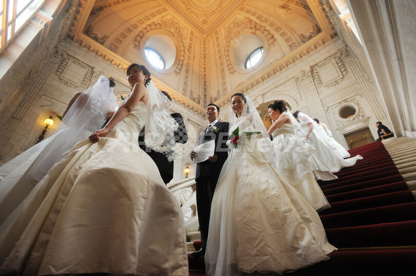 ニュース ライフ 中国の新婚カップル、フランスで集団結婚式 2009年5月8日 22:52 発信地:トゥール/フランス [ ヨーロッパ フランス ] このニュースをシェア ‹ › ❮ 5/8 ❯ 仏中部トゥール(Tours)の市庁舎内で、セレモニーを終えた中国・天津(Tianjin)からの新婚カップル。カップルらは、トゥール市が主催するパッケージツアー、第5回「ロマンチックウエディング」の参加者31組で、すでに中国で結婚を済ませている。2007年に始まった同イベントには、これまで計171組の中国人カップルが参加している(2009年5月7日撮影)。(c)AFP/ALAIN JOCARD 画像作成中 ! 【5月8日 AFP】仏中部トゥール(Tours)で7日、中国・天津(Tianjin)からの新婚カップル集団が、市庁舎前で祝杯を挙げた。新婚カップルらは、トゥール市が主催するパッケージツアー、第5回「ロマンチックウエディング」の参加者31組で、すでに中国で結婚を済ませている。2007年に始まった同イベントには、これまで計171組の中国人カップルが参加している。(c)AFP ライフ 一覧へ> メディア・報道関係・法人の方向け 写真・動画 購入のお問合せ>